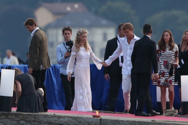 Per il party di benvenuto informale a Stresa Beatrice Borromeo ha scelto un abito di Alberta Ferretti della collezione ss’15.